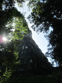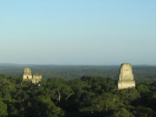 El Zotz was the ruins we reached on the second day of the trek. El Zotz literally means the city of the bat and on the first evening, just as sun set we got to watch thousands of them emerge together from their cave. The sky went black there were so many. It was incredible as they silently flew around so, so close but never touching. The El Zotz site felt very authentic as you cannot get their by road so we were the only people their other than the care takers. The ruins are only partially excavated and are still very much covered in jungle. El Zotz is only a day and a half walking distance from Tikal and you can actually see Temple 4 from the top of the temples.