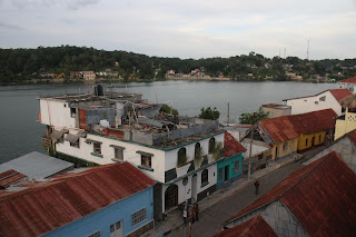 Even without the excitement of the festival Flores is a lovely place to visit. Built up colonial style, the island is very picturesque and while it attracts a lot of tourists it doesn’t have the same staged feeling that Antigua can have. As with many other affluent places in Guatemala it is protected by armed police and the army has a check point half way across the bridge to the main land. The island had many of the luxuries we had missed in Livingston including the first modern mall we had come across. While some may lament this it is also a positive sign of progress (even if only the very rich Guatemalans and tourists can afford this). Flores is the closest main town to Tikal and every second house is a restaurant or a hotel. As such the locals are relatively well off when compared to the rest of Guatemala and you see teenagers wearing braces, young boys on skate boards and girls in private school uniforms. Despite all this the town retains its charm and in the evening many locals and tourists a like gather on the wharf to jump into the warm clear water and watch the sun set.
