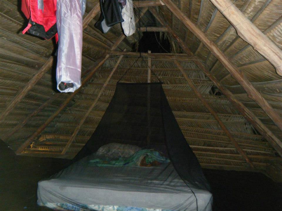 We left Flores at 7am on Wednesday the 16th of January and travelled south to the city of Coban and then almost doubled back north east to Lanquin, a Qéqchi Mayan town high up in the central cloud forest. We reached Lanquin just after nightfall but still had another hour journey to Semuc Champey, a remote village only accessible by four wheel drive. Sixteen of us tourists were packed into the back of a partly covered truck sitting on planks of wood which slid around perilously at every turn in the road. Despite the long journey, we were all in high spirits and enjoyed the bumpy adventure. At Semuc Champey we were given a room in the ceiling of a straw roofed hut with a foot of a gap all around the eves. A mosquito net kept the bugs at bay and as the electricity generator switched off at 10pm (we only had electricity from 6pm until 10pm), we fell into an exhausted slumber.