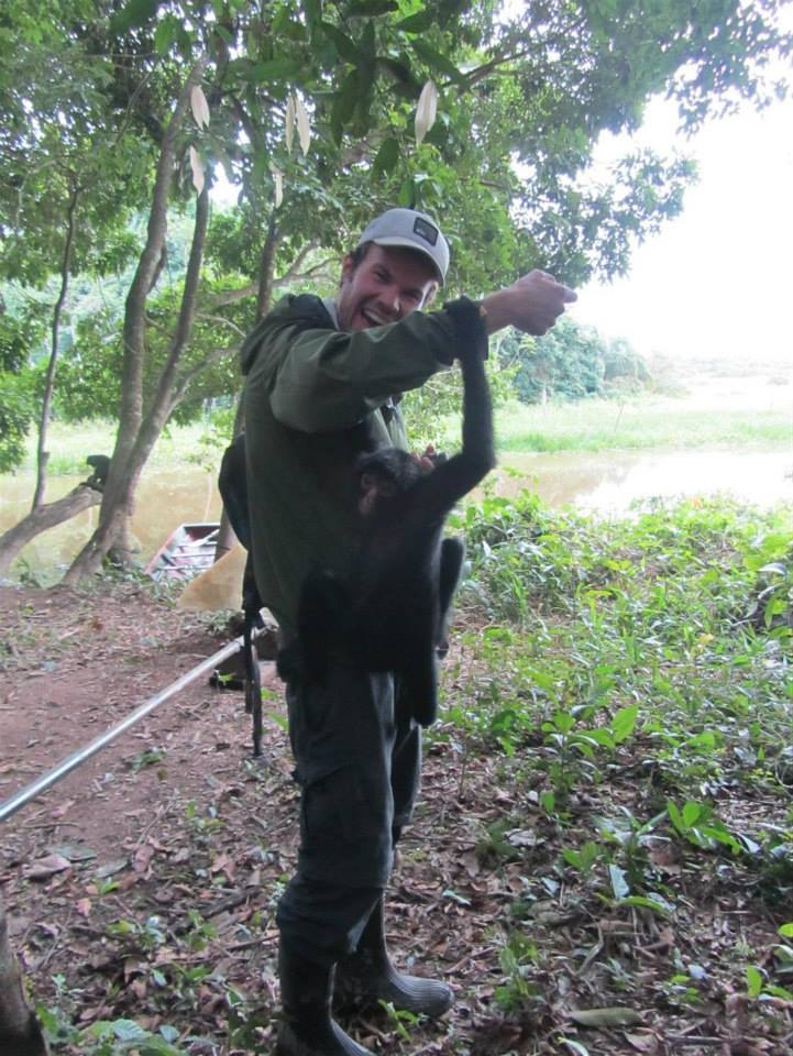 The monkeys were very cute and affectionate, despite being semi-wild and free to roam as they pleased. They were happy to lead us around by the hand and show us things of interest to them, such as the fire, where their minder was boiling some water. They sleep high up in the tops of the trees, but when they heard us returning later that evening they shuffled down and begged to be lifted up for a cuddle. The night air was cold and apparently they love a little extra body warmth to help keep them warm. Pepé, a younger male took a particular liking to Matt. It was amazing how human they were and even took offence when you pulled your hand away from them, or when they were trying to show you something. Unfortunately for them, because the spider monkeys live solely on a diet of fruit, they are meant to be quite delicious and the locals have eaten to the point of extinction in this particular spot. Until these pets are old enough to take care of themselves in the wild, there wont be any truly wild spider monkeys found here.